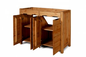 Дверки усилены рейками от расползания. Задняя стенка открыта для комуникаций. Внутри каждого отеделния за распашными дверцами по одной полке.