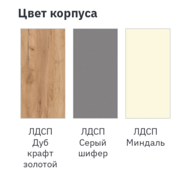 Цвет корпуса: Дуб крафт золотой, Серый шифер, Миндаль.